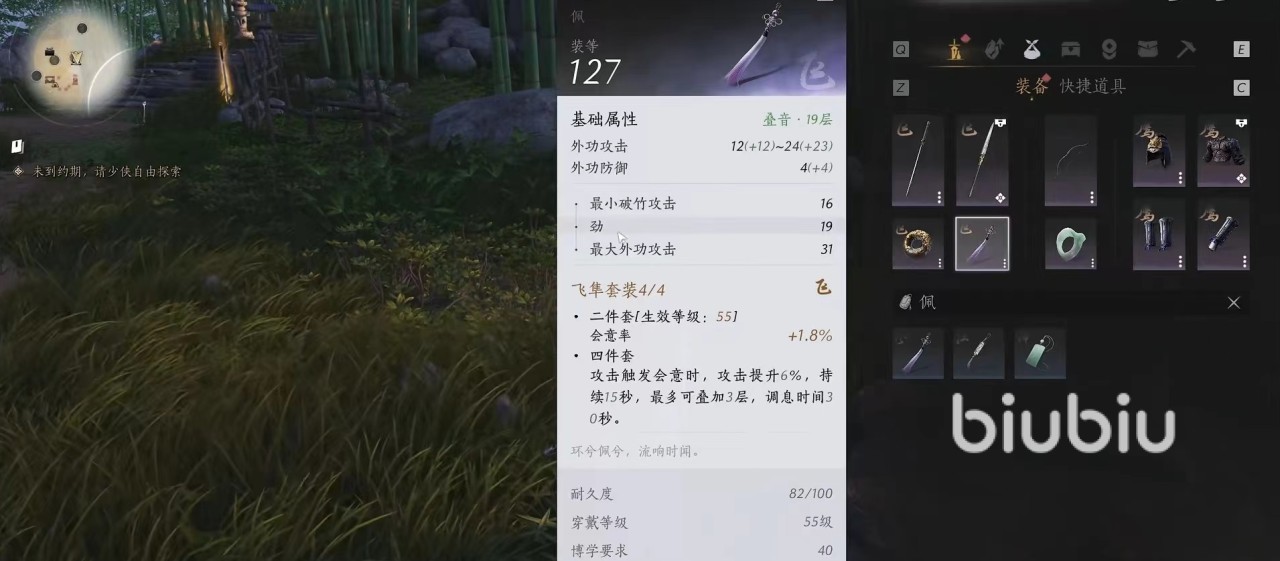 第二件是飞隼,当凑齐四件套时,效果为攻击触发会意提升攻击力,适用于那些连击数较高而且会意概率比较高的功法,搭配起来比较广泛,配泥犁三效果更为突出。第三件时雨,这是一件需要有护盾才能达到加成最大化的套装,它具有常驻会心伤害提升,在一些需要频繁移动见缝插针输出的场合作用可圈可点。最适合搭配的就是嗟夫刀法,嗟夫刀法搭配心法抗造大法,能够提供持续数十秒的护盾,可以让效果最大化发挥出来。