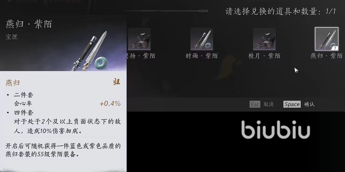 第四件是燕归,它的效果是对于带有两个及两个以上不良状态的敌人有伤害加成。游戏中对于负面状态的描述并不多,所以限制了该套装的使用,且伤害加成并不算出彩,所以是目前不推荐选择的一个。第五件是烟柳,效果非常奇葩,是在使用重攻击后使轻攻击伤害提高,相反也可以实现,使用轻攻击以后重攻击伤害提高。数值相对比较孱弱,也不推荐选择。