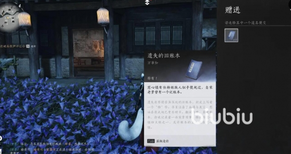顺着这条路到目的地后会发现有一大片蓝色花海,而杨一先就站在其中我们和他进行对话后,将旧账本送给杨一先,这个遗失的旧账本是他爹的,对于他而言有非常重要的作用,在拿到后他会不停的翻找,找到自己想要的数据后我们的任务就完成了。