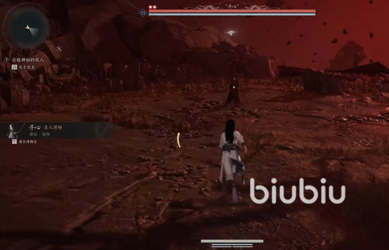 这时走上台阶,拾取古旧的乐谱和无名的玉笛,将会触发一段剧情,无面人们全都动了起来,将其引到机关上,就可以开启下一个地图的大门了。来到密室后首先点界碑,然后开箱子,桌子上会有线索,然后点击查看是各个门派的招式,演练招式时会走火入魔昏过去,醒来后已经来到活人医馆的2楼。通过一路调查,我们已经搞清楚这些无面人都是英雄,他们就是为了夺回十六州,但因为换脸手术失败,所以只能在地下等死。继续向前进来到猩红之地,触发一段剧情,该剧情设计得非常精彩,大家千万不要错过。剧情结束后和寻心展开战斗,因为寻心有两条命,所以战斗比较艰难。