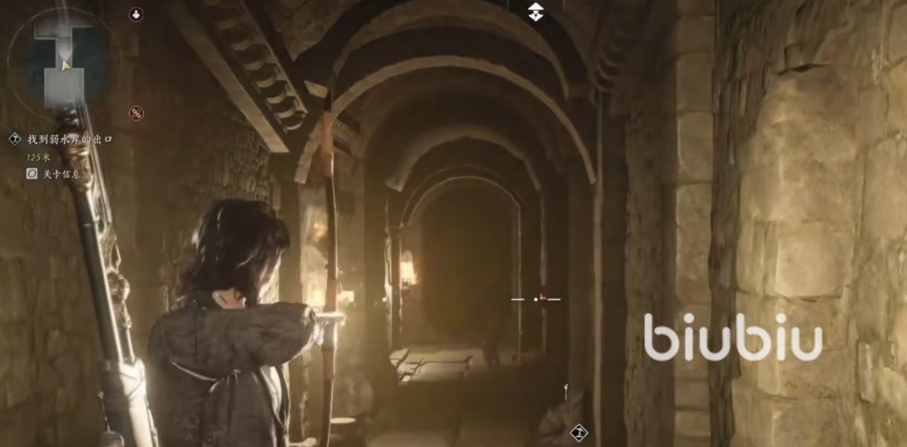 点灯之后向深处走去,在路上遇到无面人,这时发现他没有血条,所以无法攻击,地上会有很多地板有着不同颜色,踩上去会触发机关,这里一定要注意。边走边用弓箭点燃壁灯,然后一直走到通道的尽头,会发现一个大坑。跳下去后继续探索,右边会有一个宝箱,可以先走过去拿到,继续往下走,触发机关打开门,房间里有一个宝箱,开启后往前走,因为地图比较单一,所以不用担心迷路的问题,路痴党也可以顺利走过。接下来会走到一个很空旷的房间,房间里有无面人,这时背景音乐会非常阴森,所以要提前准备好,不然会吓一跳。