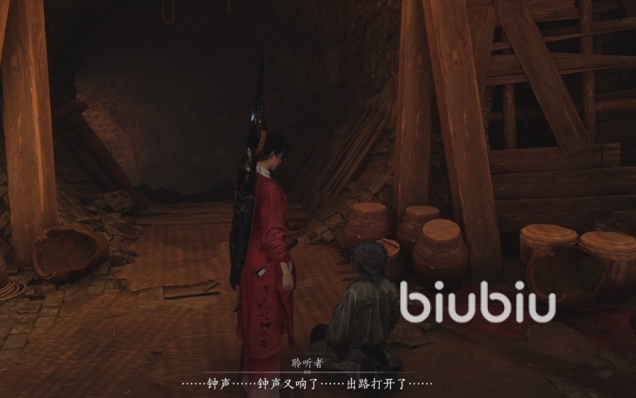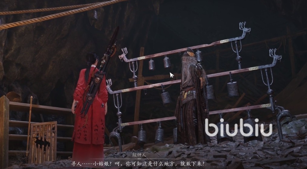 2、进入地下城后,会遇到一个敲钟人,他会告诉你需要往下走;在他边上有个宝箱,内有悠然玉;