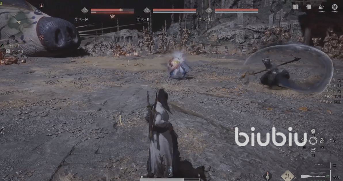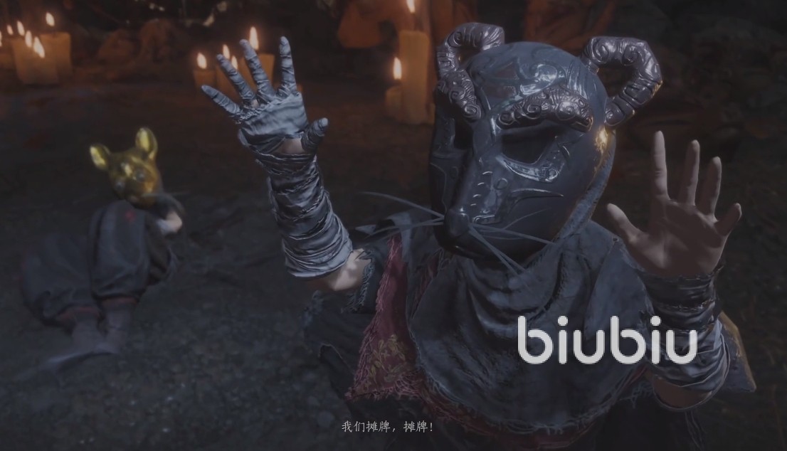 8、对战完【道长】后,会有3个巨大的老鼠从天而降,他们带着不同的面具,使用的武器道具也不一样,玩家需要完成和他们的对战。注意这里3个怪会互相配合,所以建议玩家携带上类似于弓箭的远程类武器,这样可以尽快结束战斗。