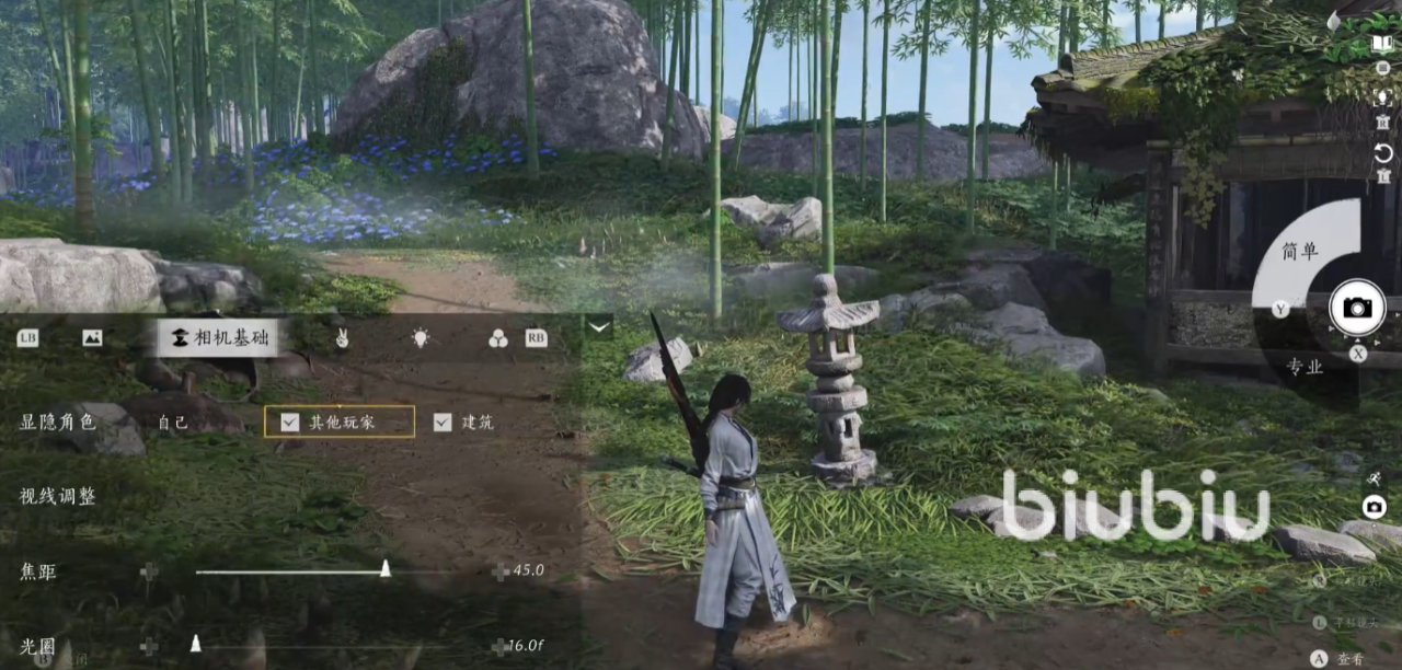 游戏里的拍照系统还是很强的,有现成的模板可以让玩家直接套,还可以设置是否显示角色,可以隐藏自己也可以隐藏其他玩家,甚至还能隐藏建筑。调整视线、调整焦距、光圈等等,甚至还能添加人物动作。