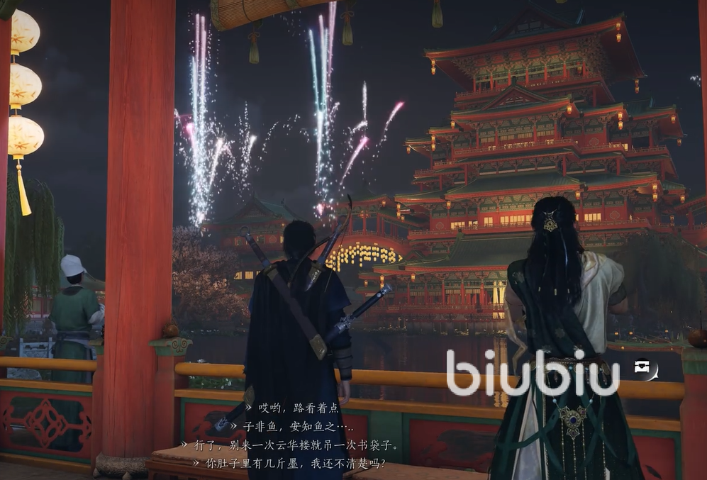 樊楼位于开封地图的北部,极富韵味的建筑风格和细腻的画面设计,让人一踏入便仿若来到宋朝繁盛的都市夜晚。这里聚集了三教九流,各色人等往来穿梭,灯火辉煌的场景更是展现了千年前的烟火气息。在樊楼内,玩家既能欣赏身穿华丽古装的舞女翩然起舞,还能感受古代市井生活的欢愉与热闹。更令人期待的是,这里每到特定时刻,还会上演一场璀璨夺目的烟花秀,让整个樊楼都被点亮,极具视觉冲击力。
