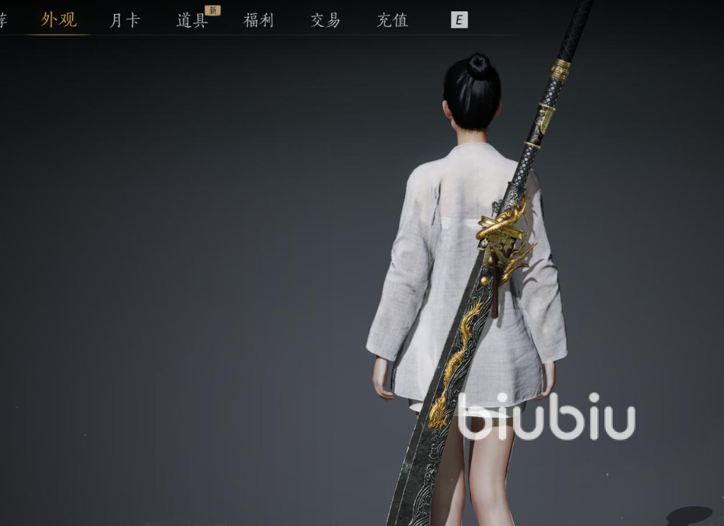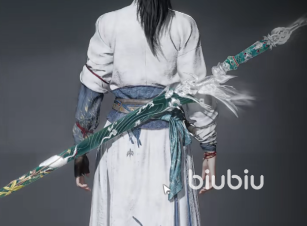 陌刀外观“无明”,超长的刀柄与刀身,并且金色龙纹缠绕,刀上还有如禾穗状的流苏。双刀外观“无争”,常态下是交叉放置在背后,握持状态则是手游反持,右手正持。剑柄和剑鞘上有皮革固定,刀柄上有一些复杂的花纹和图案。