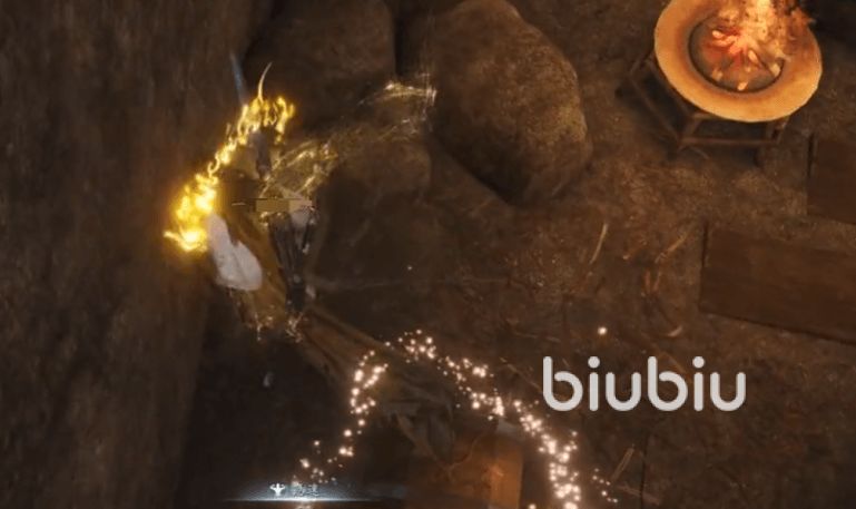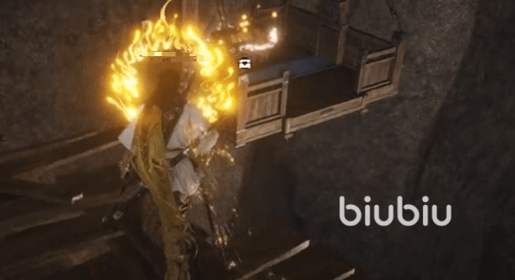首先大家需要来到鬼市,前往下图标记处,来到后会发现这里有一个机关,互动触发机关后会打开一个大门,进入其中后直接往前方走,等走到一个吊桥之上的时候,用千斤坠招式往下方跳跃。