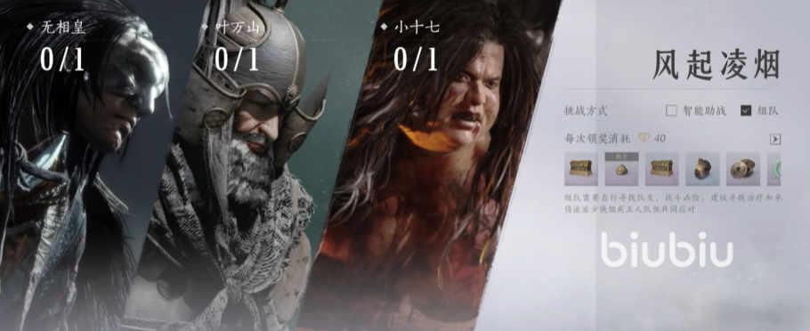 侠境,多人boss战,可以组队和好友一起,也可以单人匹配NPC协助战斗,不过单人的奖励是要比多人的差一点。