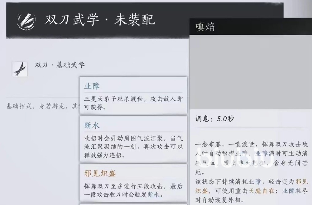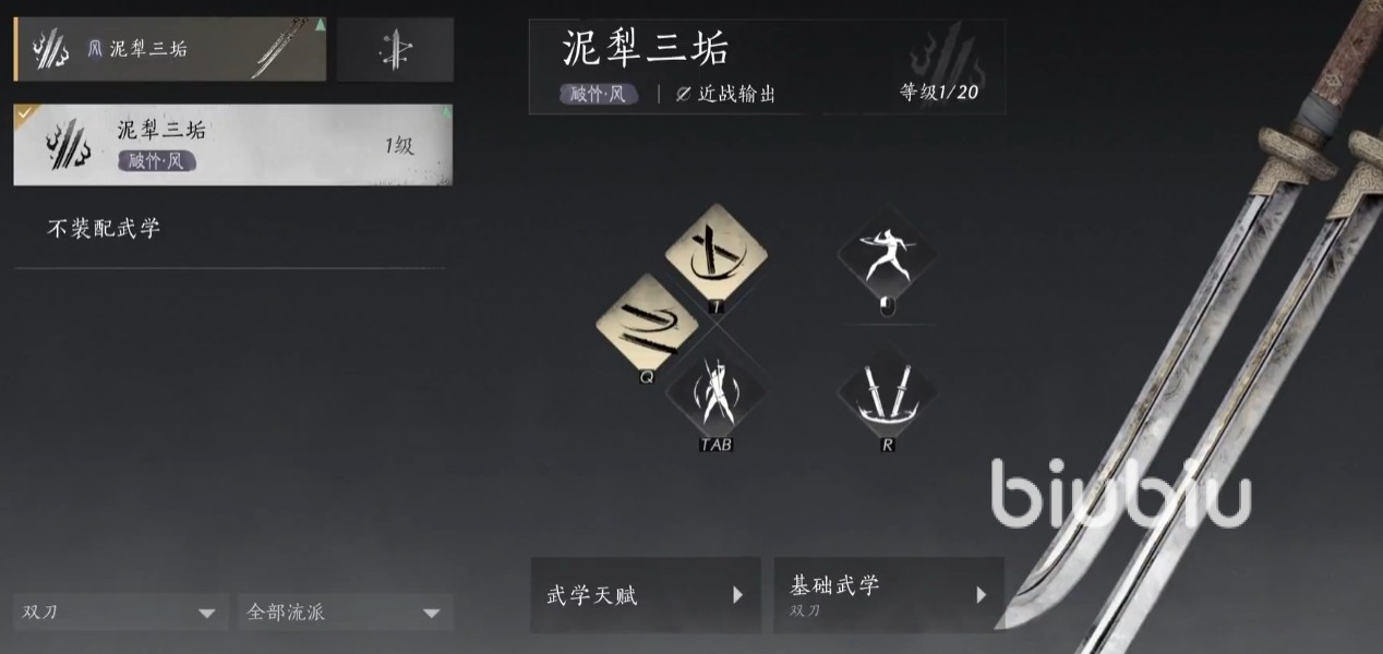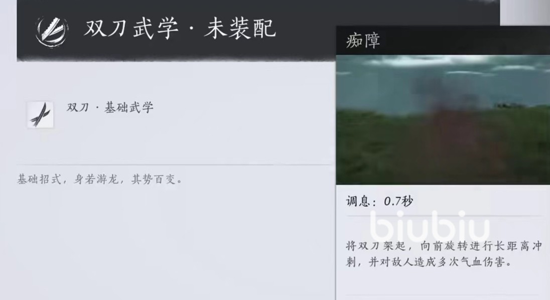 双刀是目前游戏内攻速最快的武器,它拥有一定的狂暴技能,能够快速的发起攻击,而且续航能力非常的强。不过如果玩家在没有学习武学的前提下,这个双刀使用就没有什么价值,它连最普通的重击都是无法触发的。