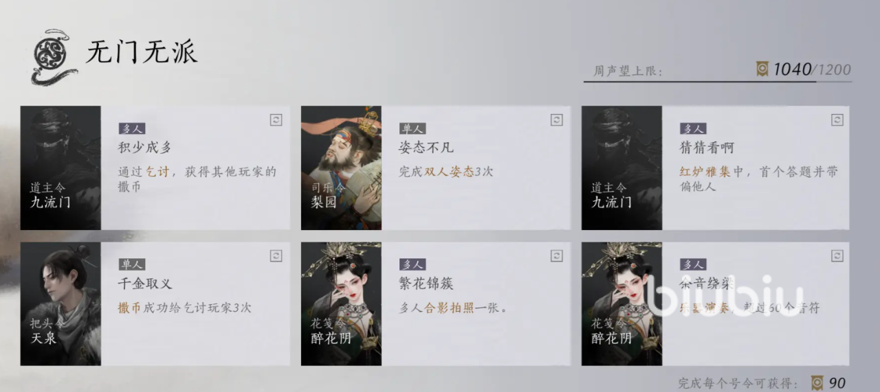战令中的每日任务是固定的,有四个都不难完成,后续熟练了更是能快速清完,点最后一个图标选择门派后再点击江湖号令,这里能看到各个门派发布的日常任务,有的简单有的难,完成不了的可以刷新刷成适合自己的。