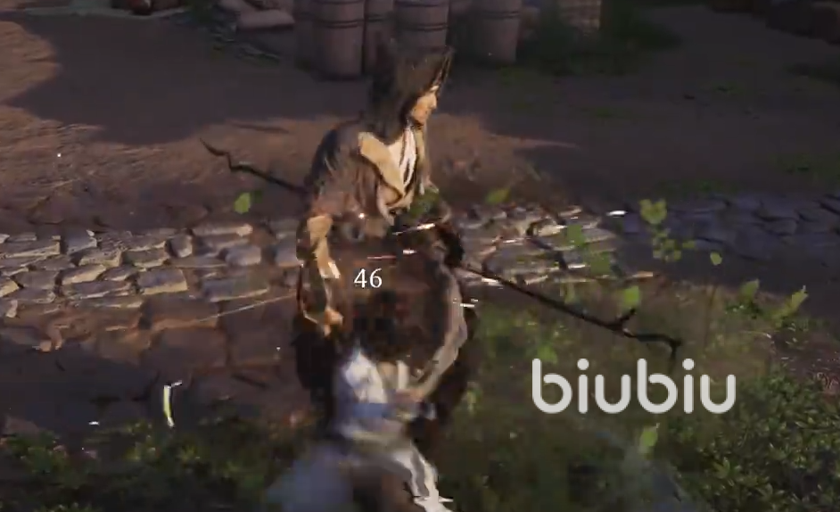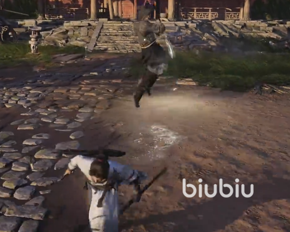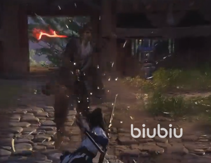 一进入战斗,我们需要先走过去,虽然敌人一开始有一种晃晃悠悠的感觉,但是一靠近他的速度就会变得非常快,然后他手上的兵器开启变红。然后直接会对我们进行一记下劈,这个招式减益直接进行防御,因为反打的可能性不高,在防御的同时可以直接卸势,这样能够消耗敌人比较多的真气。