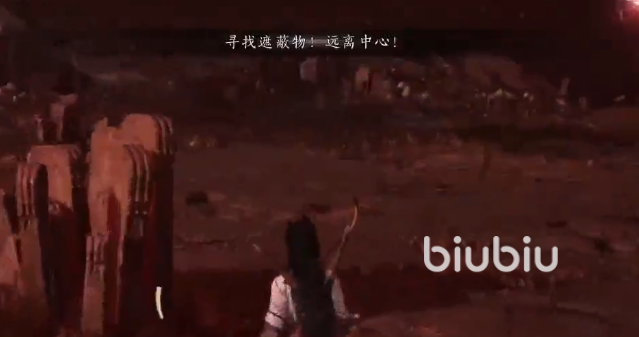 这里会举起手中的镰刀来回去雷电的力量,这个唯一的躲避方法就是像下图一样,找一块掩体在后方藏好,可以避免直接收到伤害,基本上躲过这招后再出来进行进攻,就可以顺利将其击败了。