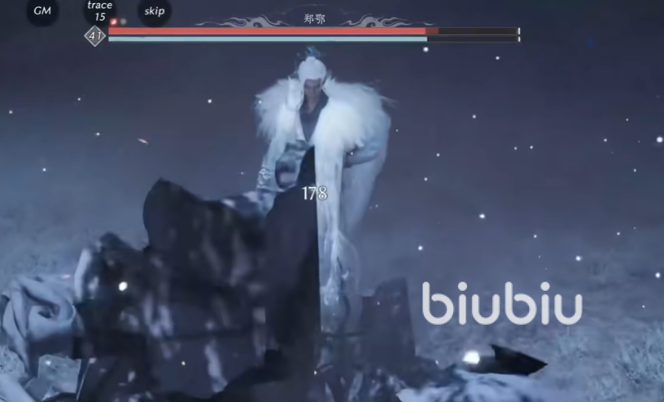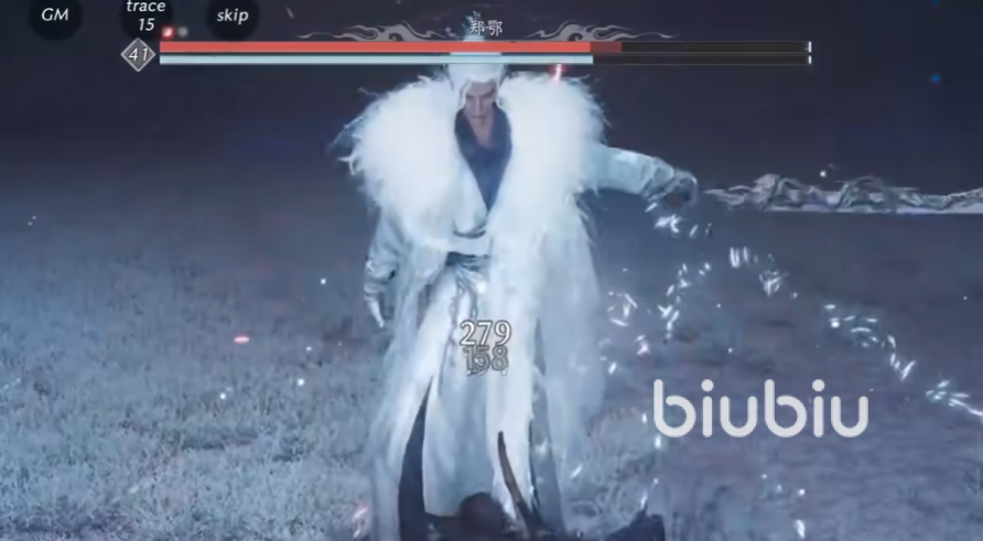 不过这时要迅速起身,不然很容易被反打。然后他偶尔也会朝着前方释放冰刃利刺,如果我们血量充足的话可以硬抗。后面他会撤退好几步,并用扇子远程攻击我们。这是依然需要闪退躲避,当它释放利刺之后,就会虚弱,我们迅速接近他就好。当他血量来到一半之后,就会进入变身状态。