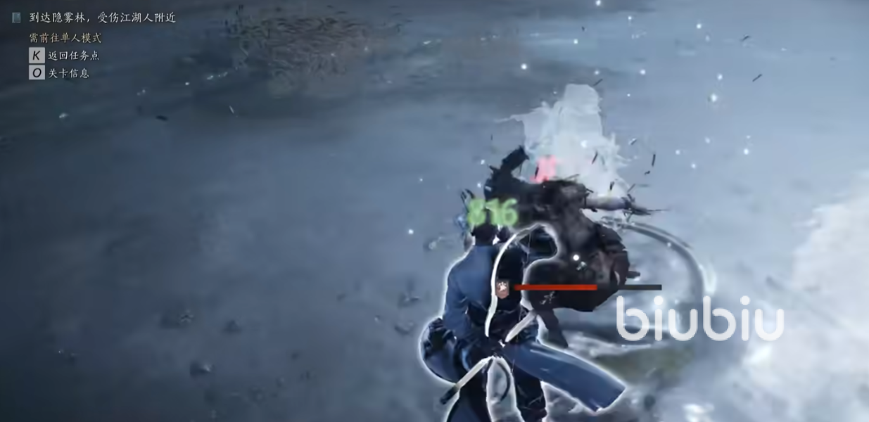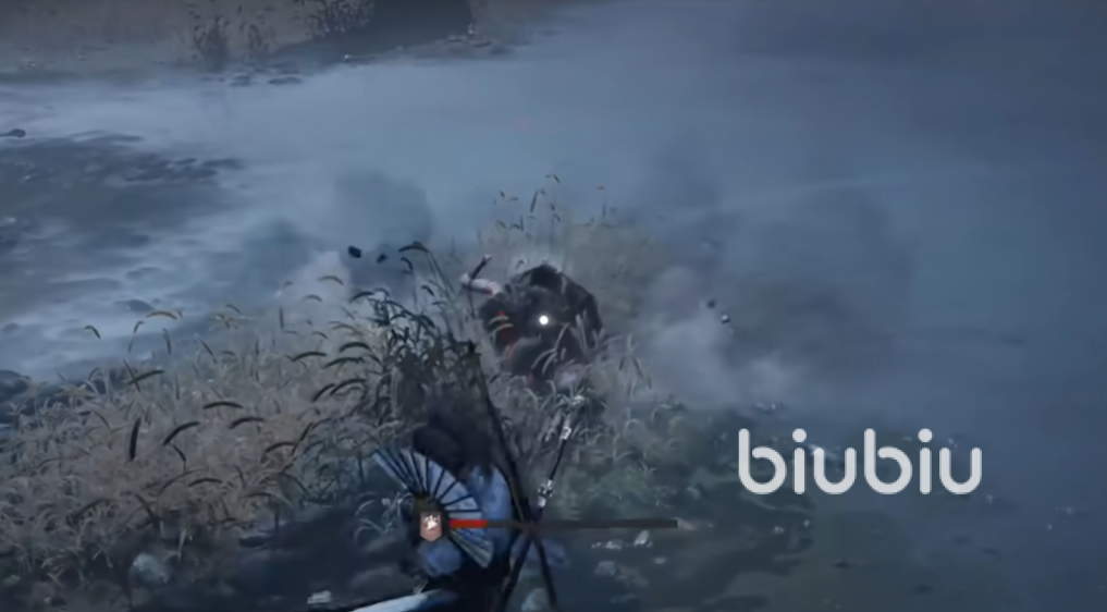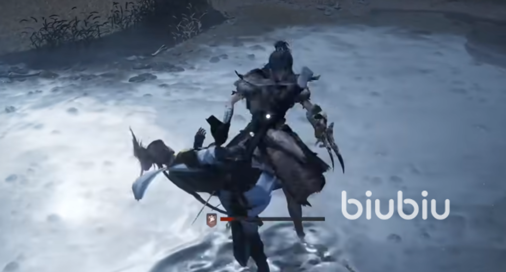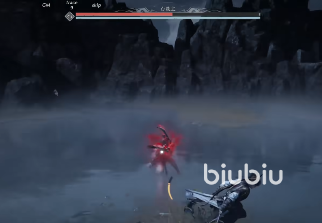 所以我们一定要趁机快速翻滚最外围,这样才能尽可能的减少伤害,避免被秒杀。之后就可以接近攻击几次,因为它会跳上上面的树枝。这时他会处于狂怒状态,并持续恢复自己的真气,要要等到他的气竭才能破掉。