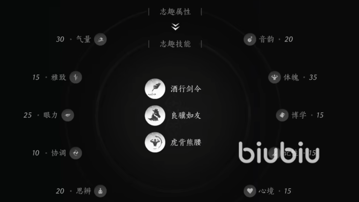 当然在搭配方面大家也不用太过于纠结,初始的选择只会节约前期的一些探索时间,后面缺体魄可以通过相扑提升、缺气量可以通过投壶雅戏和叶子戏提升、缺眼力可以通过参加参加箭法比试提升等等。