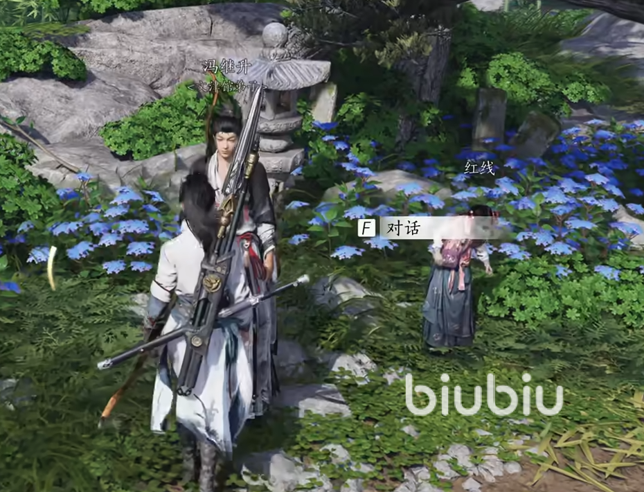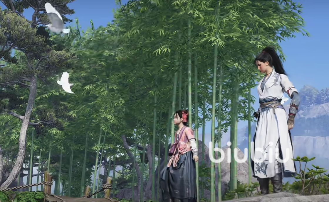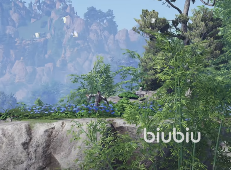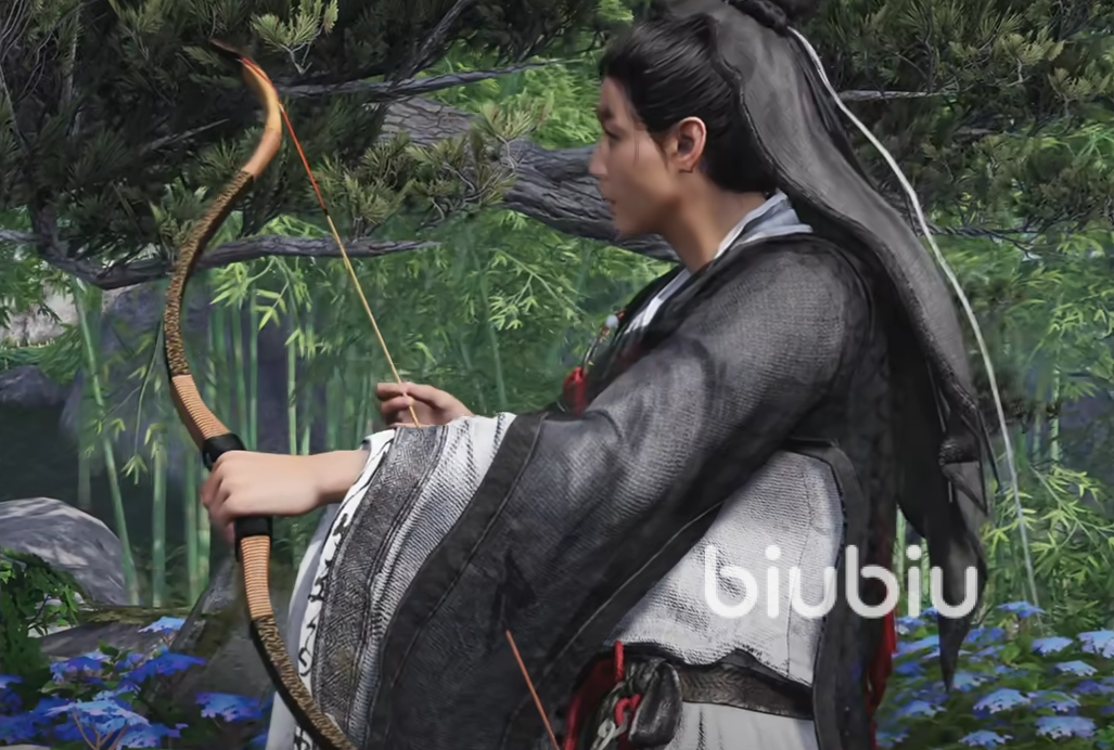 我们在一开始和红线对话之后便可以往前进行移动,在移动到一处悬崖的时候会看到不少的鸟。紧接着我们便可以去往隔壁的山头,在这里可以看到有一个穿黑衣服的NPC,之后和他进行对话,在对话结束过后便可以解锁弓箭,接下来大家便可以操作弓箭来进行瞄准和攻击。