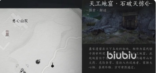 该任务流程相对复杂一些,找到正确的地点,直接到达慈心山院传送点,然后由入口进入。首先面对的是机关门,需要使用炸药桶将其炸开,先将炸药桶放在石碓中午诶,利用引爆石将障碍摧毁,拿到第1个箱子。