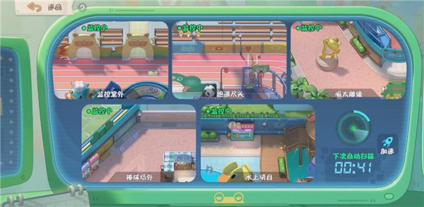 新上线的地图运动场监控点有4个,一个是在医疗室门口,乒乓球馆右斜上方,棒球管左下方,戏水区的右上方。监控室是在医疗室的右边。
