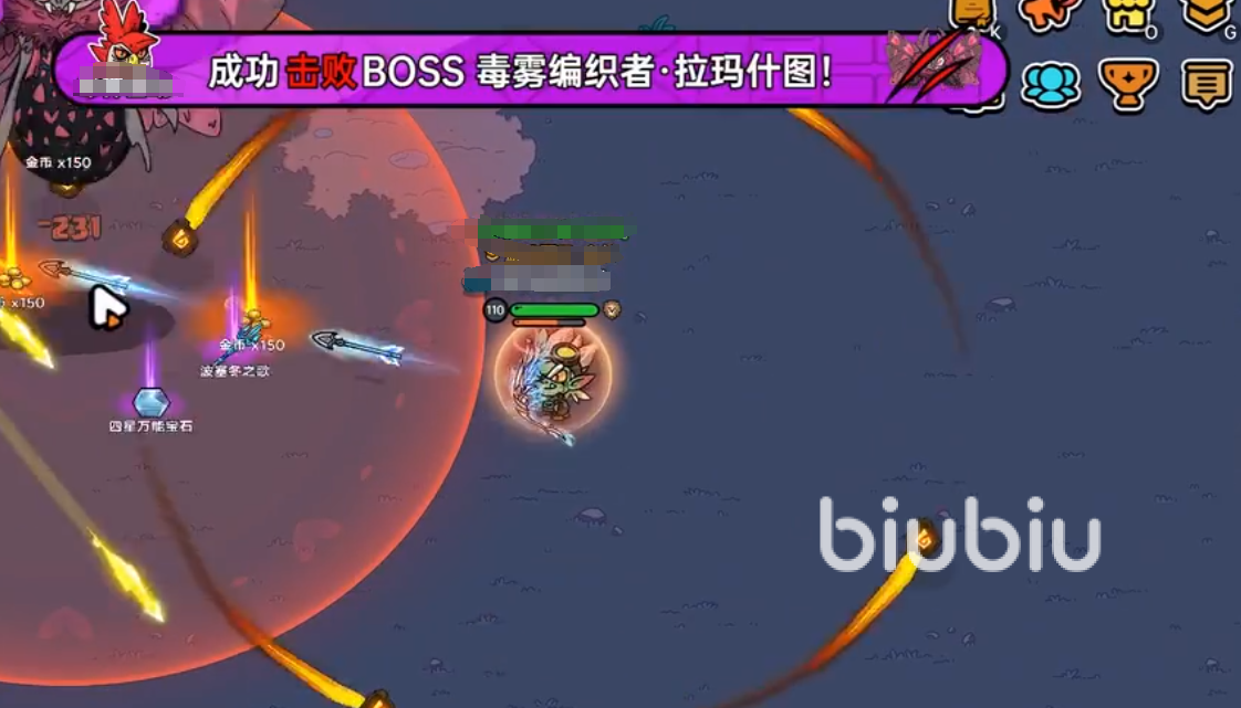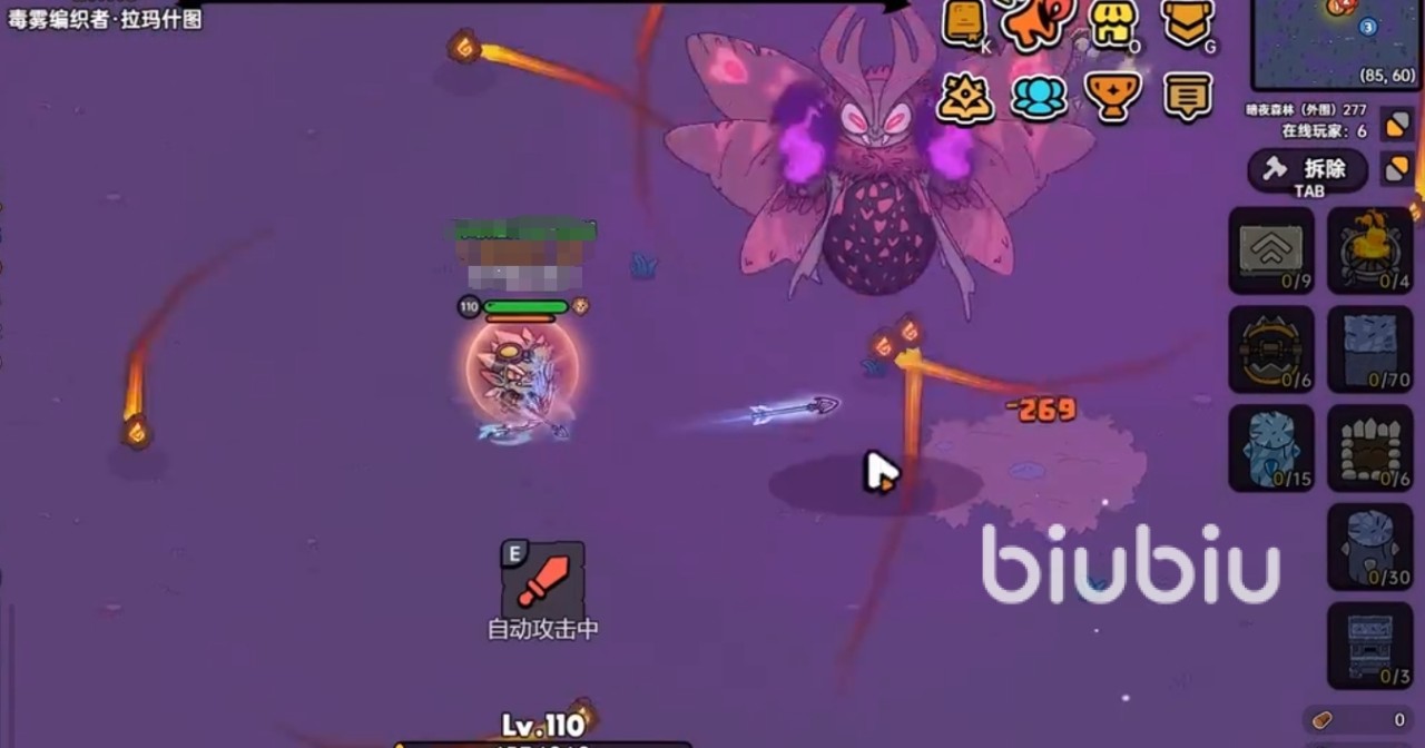 进图之前,吃一下暴击状态的buff再开BOSS,毒雾编织者拉玛什图是地图中央,外形是紫色或者粉色的毒飞蛾。刷出以后,前期疯狂平a即可。前期毒雾编织者是全屏的火球攻击,刷出的地点上有红色的圈显示范围,而且是随机放出的,因为间隔挺大玩家可以轻松躲。