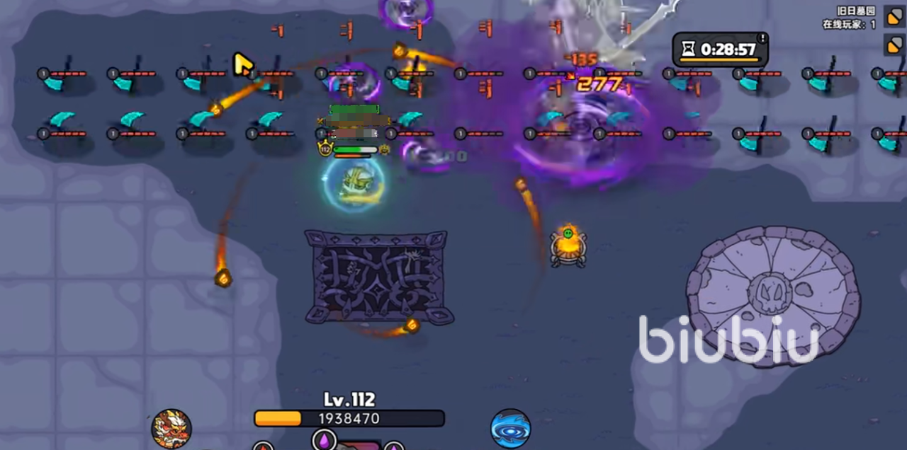 二星冥界之王技能释放的顺序与一星挑战难度一样,首先开局刷出boss之后就会放出全屏飞舞的小飞镖,玩家必须先清理后,再对冥王本体输出,不然就会被小飞镖磨血。如果玩家有装备蜉蝣,只需朝飞镖所在的地方走一圈就能全部清理掉,因而效率也很快。
