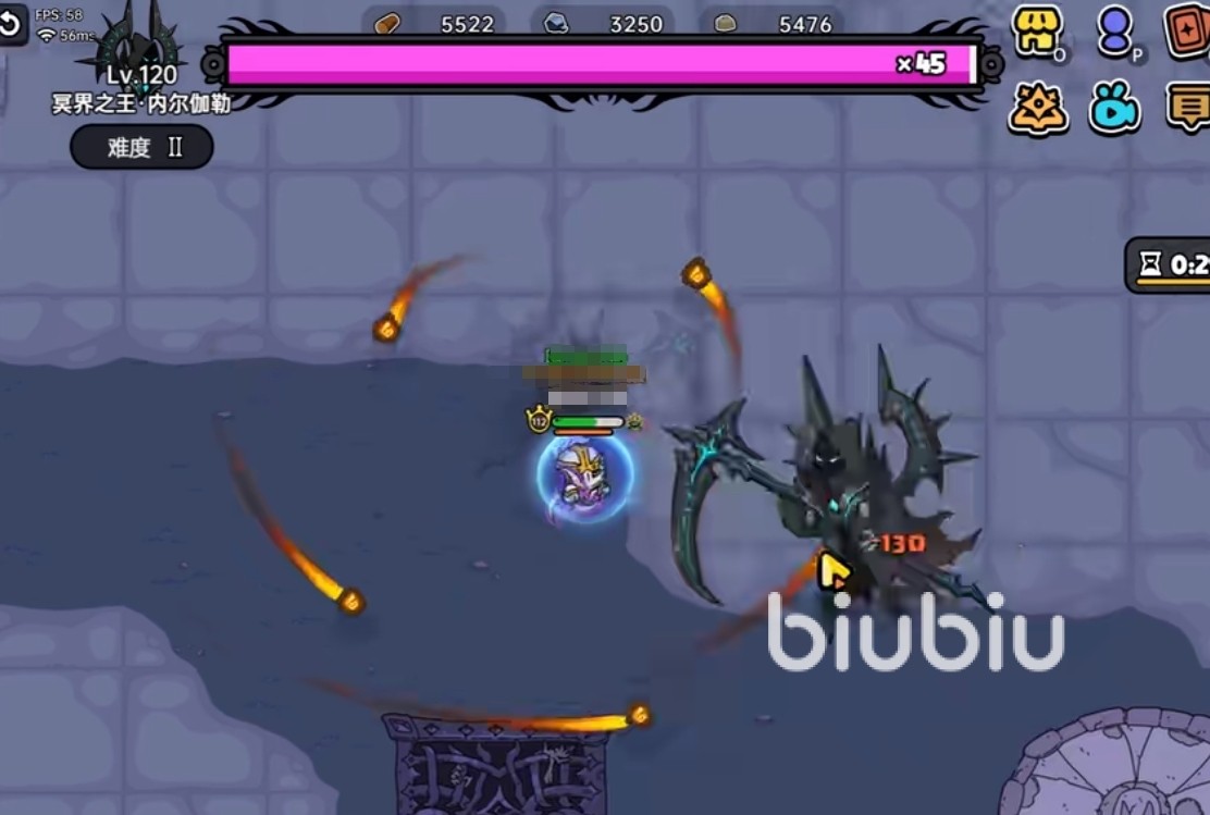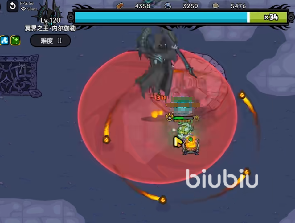 二星冥界之王的难度比一星要强,Boss的等级是120级,有45管血,根据玩家磨血状态会切换镰刀形状与本体,还会召唤九头蛇发射大规模的地图炮弹。