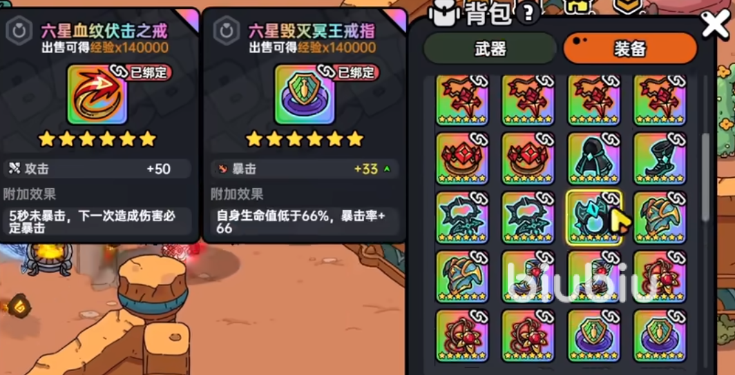 其余一个格子携带六星血纹伏击之戒,5秒内没有暴击的话,下次造成的伤害必然暴击。在打荒漠灾厄的时候,破盾立刻切换伏击,就可以将五秒必定暴击的效果收益打满。