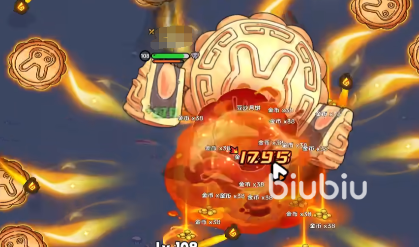 之后是第二个攻击手段,这个攻击手段为蓄力释放月饼攻击,在攻击时他会进入一段时间的蓄力,之后会向四周发射月饼攻击四周的敌人,大家在看到他蓄力的时候就需要远离他,之后就可以规避伤害。