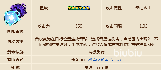 从这些技能效果可以看出,龙语者不仅操作简单,打出的伤害也很可观,更是有着团队恢复的能力,所以在很多战斗场合都有着重要的作用。鉴于自身打出的都是雷属性伤害,所以在武器方面小编比较推荐流光惊雷,在每次使用普攻命中敌方单位时,流光惊雷造成的伤害都能够增加,上限提升到40%。阴阳雷极,在目标位置生成雷球造成雷属性伤害,当出现不同磁级的雷球时,会生成电弧令对方眩晕。