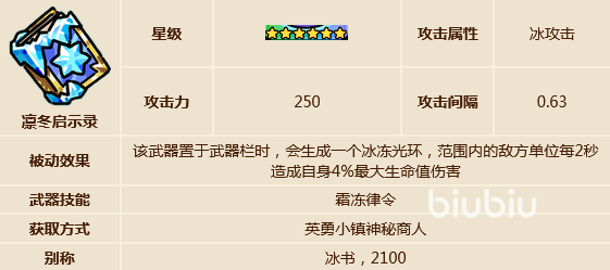 武器可以搭配凛冬启示录,该武器能够生成一个冰冻光环,对范围内的敌方单位造成伤害,按照自身的最大生命值百分比来附加。凛冬守望也可以,普通攻击命中敌人时会造成减速效果。