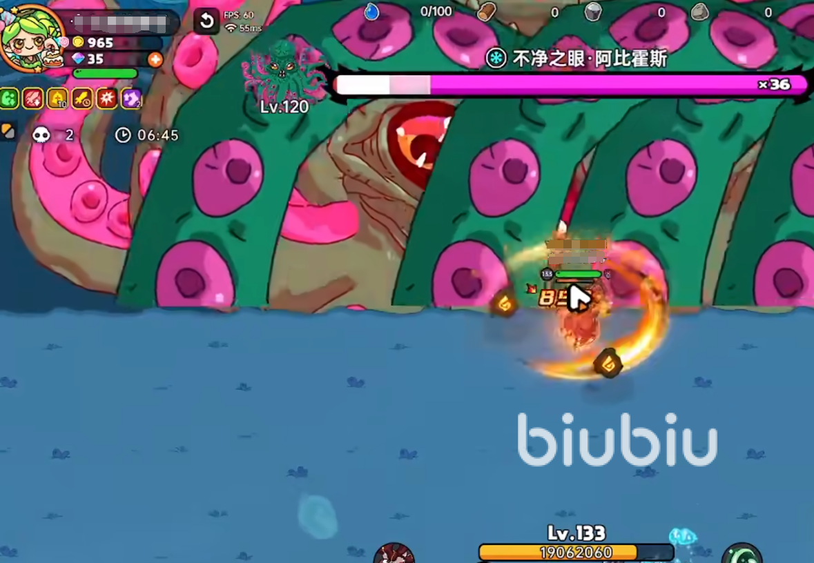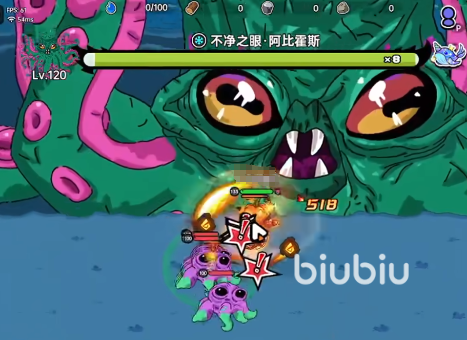 打章鱼过程中要需要注意的是,时刻留意体力值,及时通过底下珊瑚补充体力。还有的是章鱼在喷墨汁之前会有一段小前摇,如果接了技能避免误伤到队友。被章鱼伸出触手抓住以后可以通过及时的攻击进行回血。被触手抓住会持续控制一段时间才松开,期间赋予沉默与不可移动,如果玩家在10000血左右可硬抗。其余关于boss的技能并不难躲,它放出技能的同时,地面会有对应的红圈标志,玩家注意提示闪躲即可。使用防御类技能可以减免来自阿比霍斯的伤害,尤其是在它释放范围伤害技能时,确保有足够的坦度防止被秒。