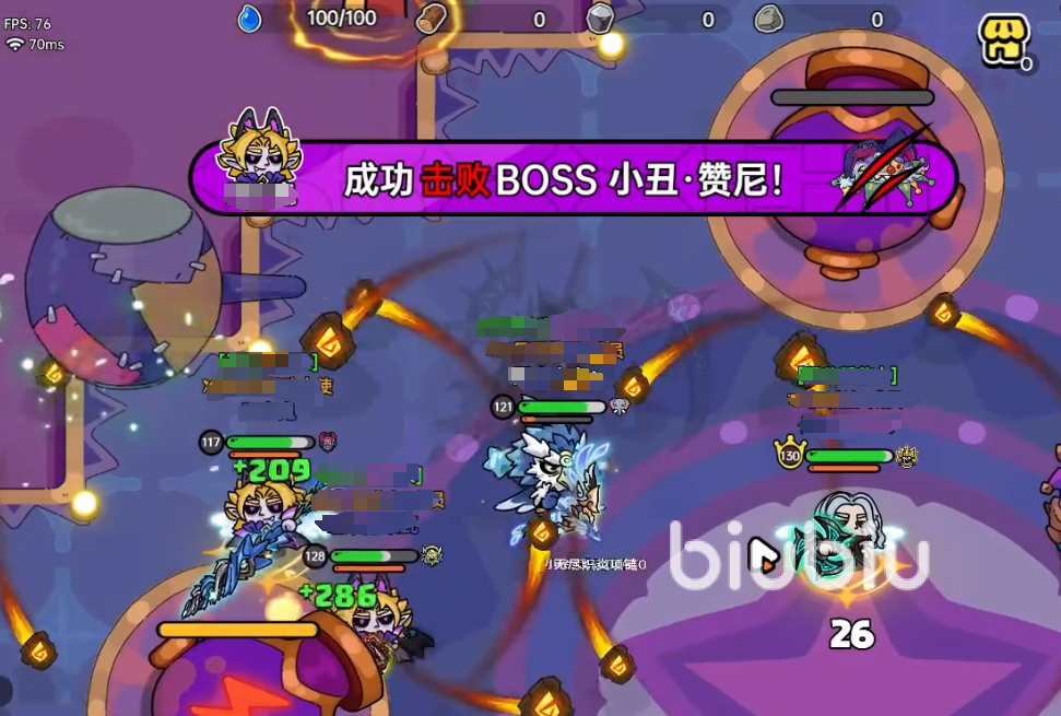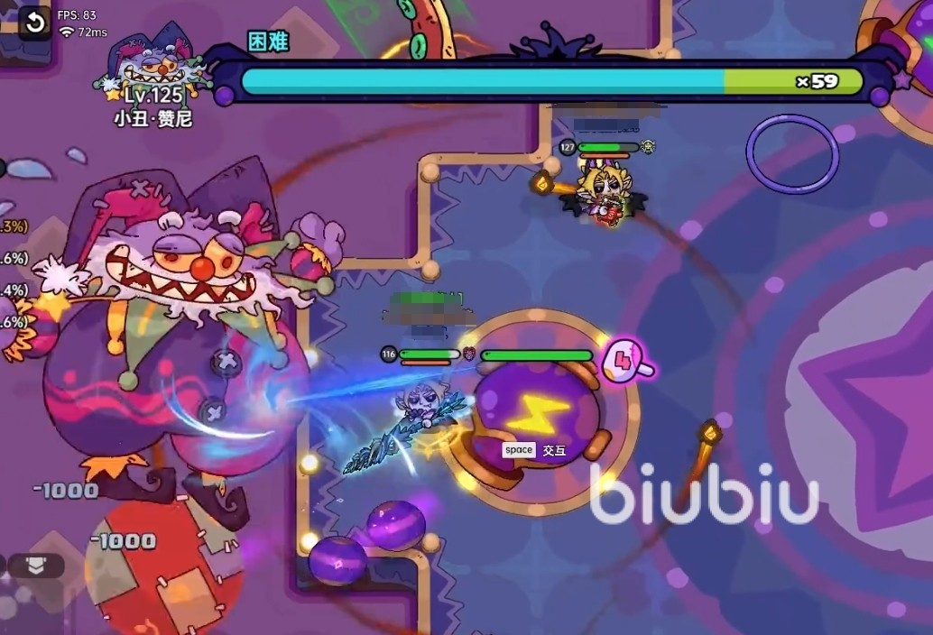 小丑的圈套技能套在地上,建议及时派玩家去踩掉,或者拉气球过去炸掉。舞台旁边的炮台可以对小丑造成大额的伤害,建议在合适虚弱的时机多用。尤其是boss在被打下球的时候,有一个小段击晕,这一时机就可以集火输出。