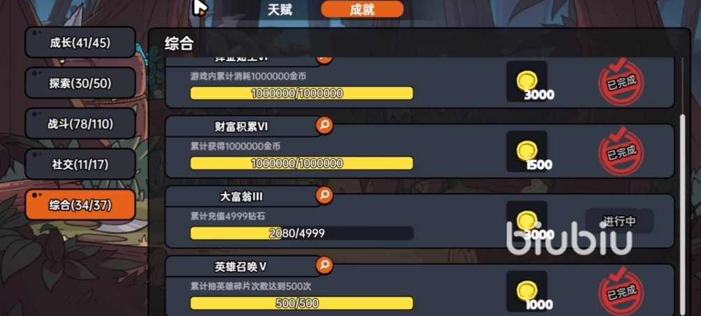 想要在游戏中获得足够多的装备,还有个办法就是完成相关的成就的内容,在这个游戏中具体是指【奖励】板块,点开奖励可以看见这个板块分为天赋、成就、藏品,每个板块完成相应的任务都能获得金币奖励,有足够多的金币之后就能去抽取装备奖励。