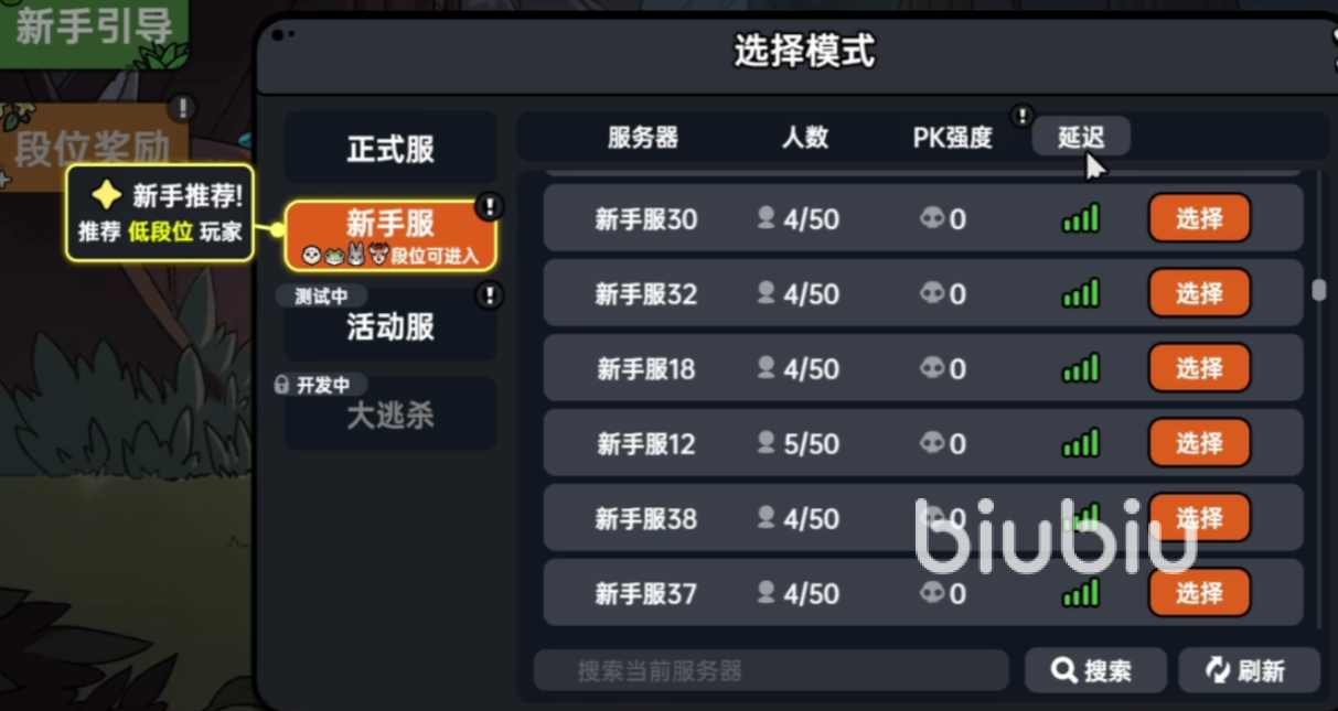 要体验一下的社交玩法,需要玩家至少达到10级,这时候大家就可以在游戏的服务器选择区块里,选择新手区或者活动区。可以看到有很多个新手服,每个服可以容纳一定的人数上限。
