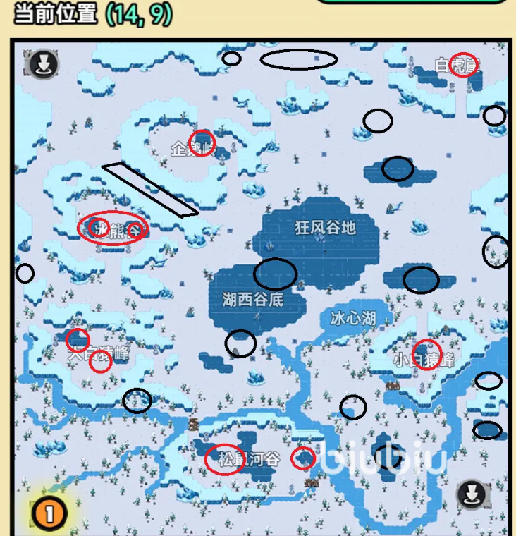 在左侧的企鹅岭、冰熊谷、大白猿峰和松鼠河谷这几个区域中,以冰熊谷中出现的宝箱数量最多,可能会同时出现三个,让大家更高效率的去获取,另外需要注意宝箱的开启需要钥匙。