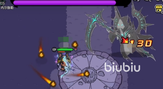 冥王是现阶段最强的一位boss,大家想要攻略它的话,那就不是只需要摸清楚攻击方式这么简单了,想要击败它的话首先得先去搭配装备,装备方法必须要带一个回血装,然后搭配风神之弓和炎龙拳套这两件输出装,随后需要先给拳套拿出来然后上火,随后用风神之弓进行输出,期间它会释放大范围的攻击伤害,或者是制造小型镰刀制造镰刀弹幕攻击,这些攻击大家需要利用风神之弓的主动加速去规避,如果规避不掉的话,那就需要用回血装备回血,需要让自己的血量保持在90以上。