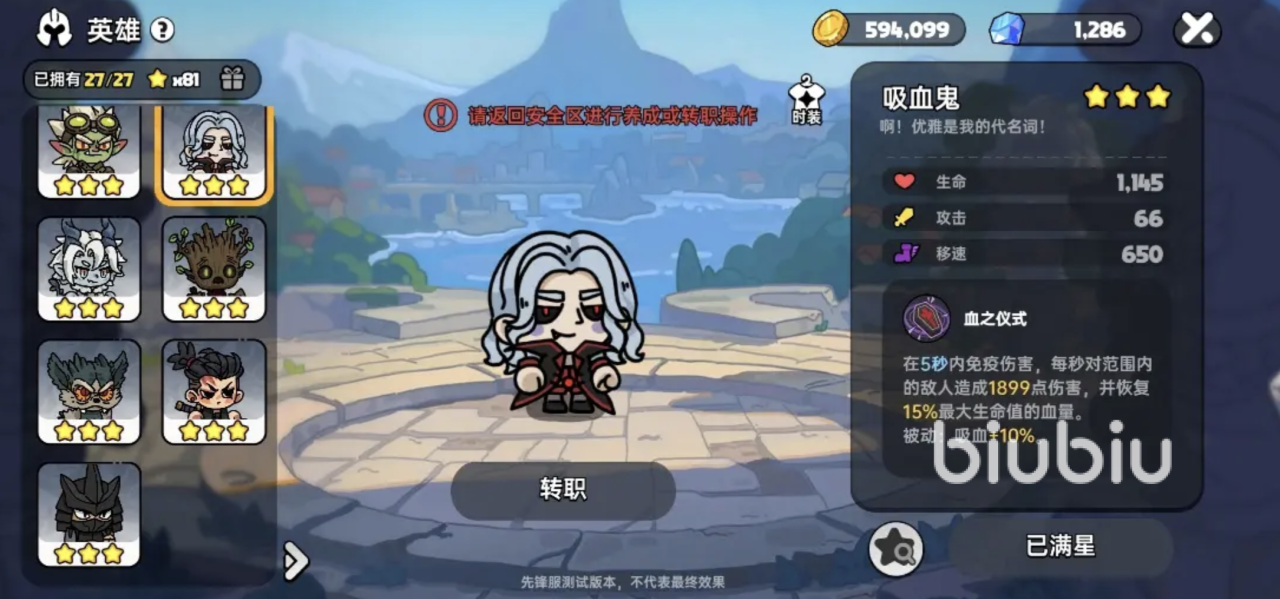 首先在准备阶段,角色的选择非常关键。推荐使用“吸血鬼”作为主要角色,原因在于其被动拥有10%的全能吸血,大招还能在关键时刻回血并减伤,对新手尤其友好。配装方面,建议尽快凑齐“魔龙套装”,该套装提供12%的BOSS伤害加成,能有效提升输出效率。