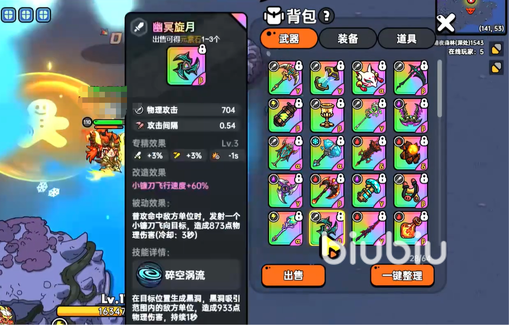 这里刷怪时,建议大家佩戴一些物理攻击的武器,也就是幽冥旋月。可以不断释放旋转飞镖,并对敌人造成高额的物理伤害;还会随机生成一个物理黑洞,并对boss造成持续性物理攻击。所以大家可使用一些远程输出的角色以及宠物,就能在旁边放风筝。
