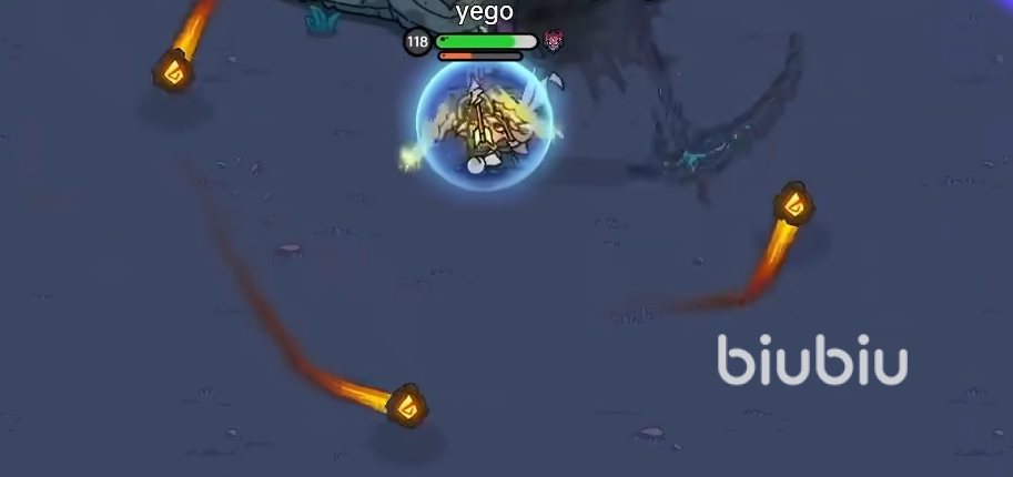 接着第二个BOSS是碧蓝之主,玩家们俗称螃蟹。本身的除了血量和防御较高以外,它的攻击方式没有那么丰富。我们在攻击它的时候注意尽量不要距离它的钳子很近,不然很容易受到攻击。第二个需要注意的便是螃蟹附近的泡泡的动向,因为在BOSS血量下降到一定的程度会进入无敌,这个时候需要推泡泡解除。