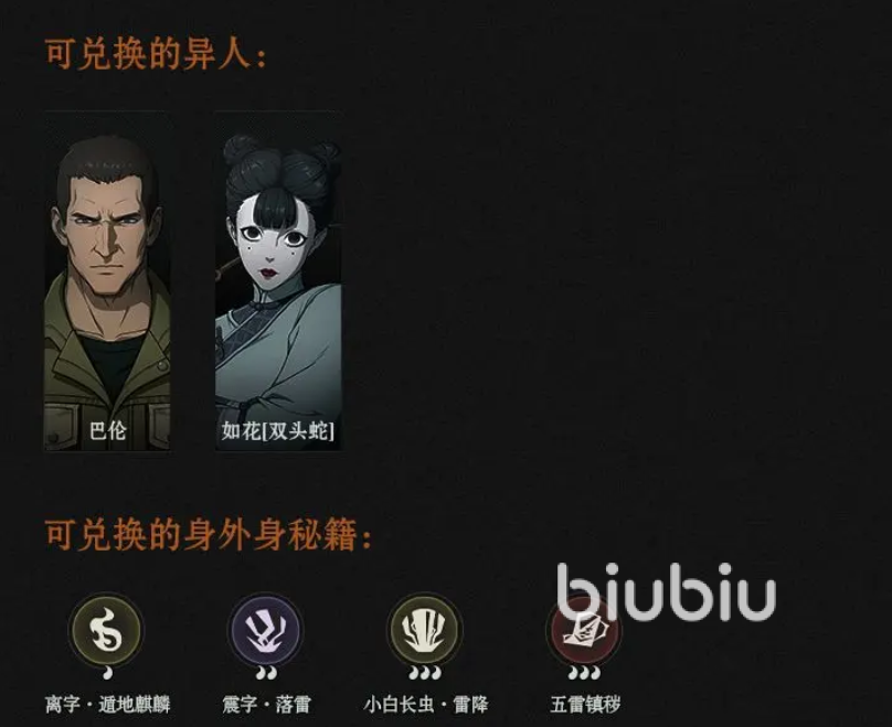 比较重要的基础资源就是货币。目前的货币有玄黄玉,灵墟币,玄黄玉可从竞技挑战等玩法中获得的,在挑战高难度目标能获取的稀有货币,主要的用途就是招募部分稀有的异人,或者是用来换取自己需要的身外身技能,也是其主要的兑换渠道,比如巴伦,以及双头蛇版的如花都可以使用玄黄玉来兑换。