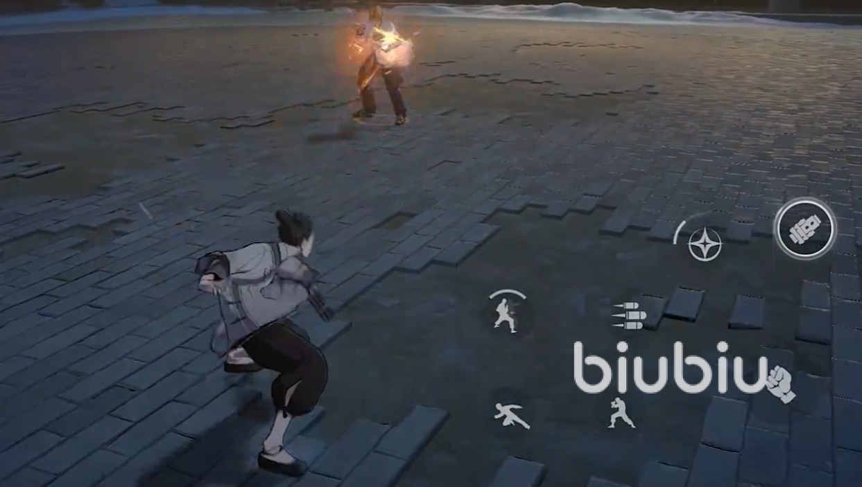 如花火器的普攻会用左臂的枪械向着前方射击,这个普攻和其他角色不同,打出的是远程攻击,可以用来在远处不断的拉扯骚扰对手,不过需要注意这招不能打断对手的动作,她的投技“望月炮”会滑铲将对手踢到空中,并用手中炮进行追击。