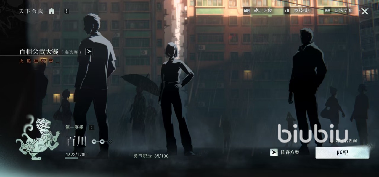 异人之下手游中的竞技玩法非常丰富,主要有以下几类。第1个是天下会武,也就是游戏里的排位赛,这是整个游戏的核心竞技玩法,属于1V1的模式。玩家点击匹配后,就可以选择和其他人进行随机排位,然后进行Bo5模式的车轮赛制。对局开始前,需要选择3名角色,决定好出场顺序和携带的身外身技能。单局时长被控制在了90秒之内,率先击败对手的一方获得单场胜利。在单场倒计时归零时,血量高的一方获胜。