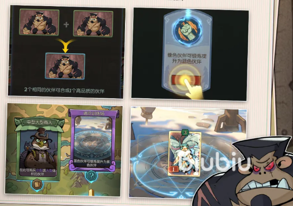 通过奖励、合成和训练场能升级伙伴,让他们在旅途中越来越强,从各种商人、圣光护佑、鸡尾酒特供等随机事件中,可获得增益效果,最后赢下奖杯意味着获得胜利,要是输掉会扣除信心,输掉的朋友可以更换花匠 、 铁皮人 、龙女主角重新开启挑战。