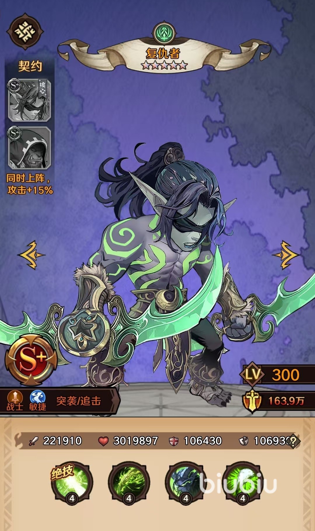 首先推荐的是复仇追命队,这套阵容的核心是复仇者,其他队员选择黑暗骑士、先知、舰队统帅和大魔法师。阵容搭配的思路是先知为复仇者提供上阵的羁绊属性加成,同时配合上舰队统帅和大魔法师这两个辅助输出,为复仇者提供伤害补充,达成连杀条件。这套阵容很适合新手在开局爬塔或者是pvp对战选择。