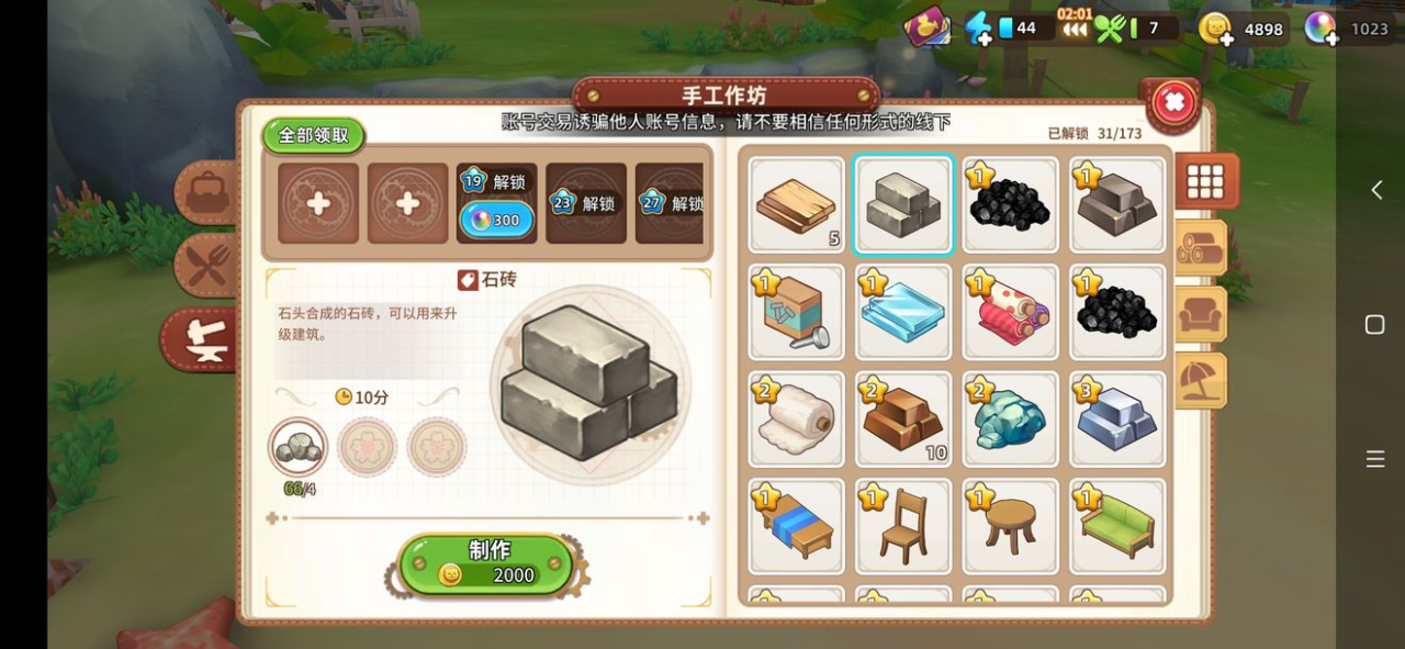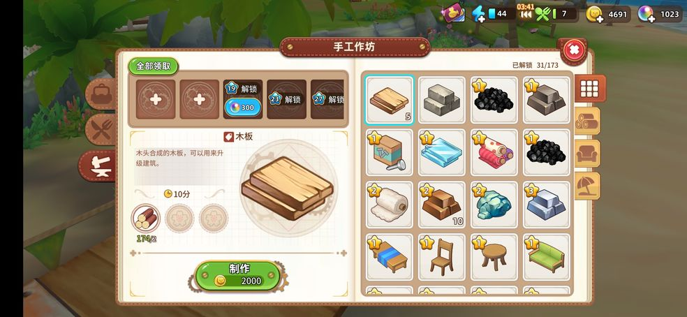 (3)如何制作:制作强化木板也是非常重要的一环,大家一定要掌握。玩家只需要打开游戏中右上角的背包,然后点击按键选择需要制作的强化木板进行制作即可。只要材料足够,直接点击制作就行。