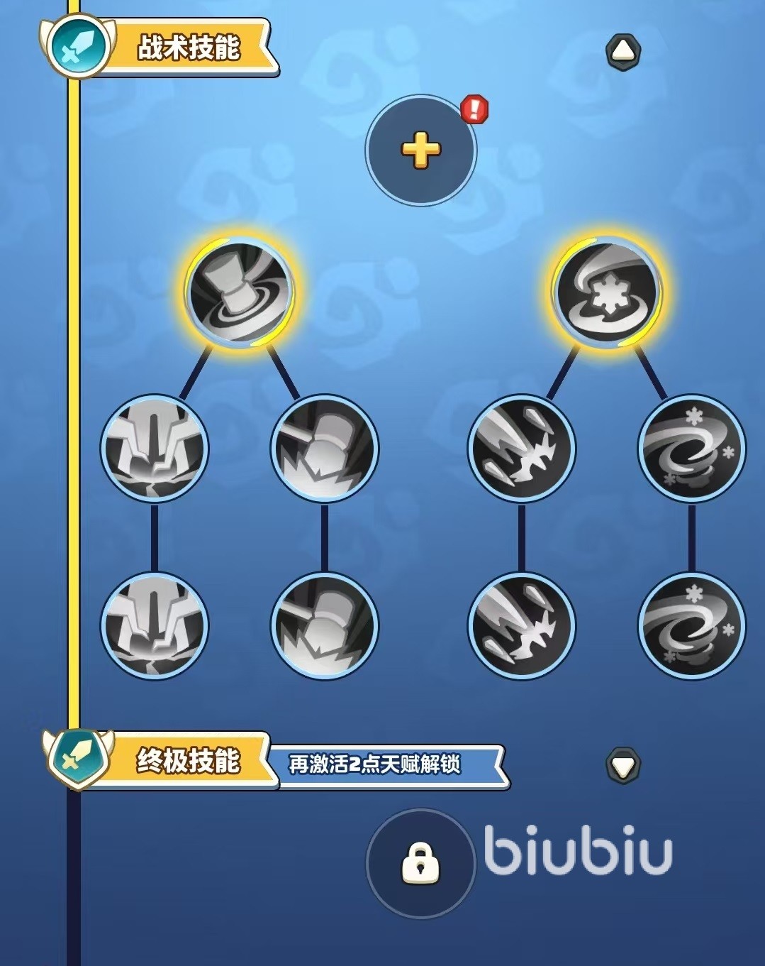 总结来说,基础技能先点亮第一层,然后选择一个核心技能,将其效果点满,再到战术技能点亮第一层,然后激活终极技能点亮第一层。优先去学习新技能,也就是解锁技能栏,这样才能在有限的点数下达到最好的效果。