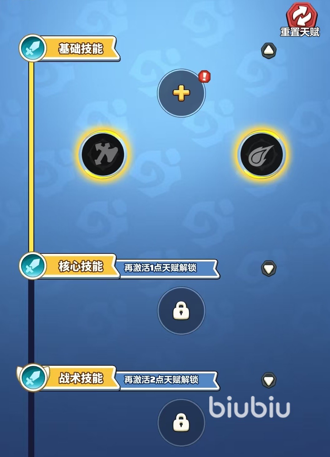 在第1阶段一共需要投入4点天赋点,将基础技能第一层点亮之后,其余点满核心技能,这时可以看到核心技能的第2层以及战术技能的第一层,都可以点亮了。按照这样的思路,得到第5点天赋点时,应该去优先解锁战术技能第一层。在第2阶段一共有7点天赋点,将战术技能一层解锁后,其余的天赋点都点到核心技能方面,点满到第3层。因为核心技能就是等于战斗中的主力,所以一定要优先点满。第3阶段一共投入10点天赋点,将战术技能第一层全部补足之后,接下来就能够解锁终极技能了。最后一点天赋点将终极技能点亮就可以。总体来说前期阶段资源比较紧缺,所以要围绕着核心技能去打造技能链,也就是以基础技能和战术技能为辅,核心技能为主。