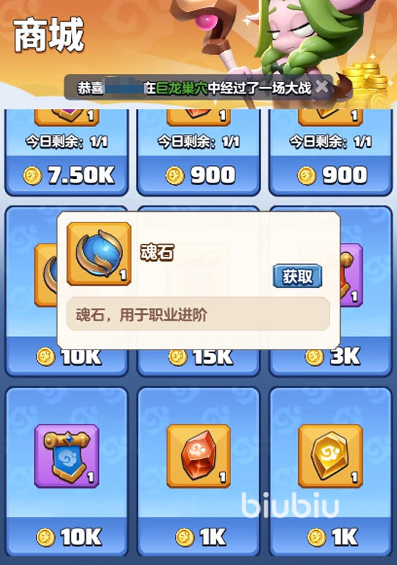 然后这里还设有商城,提供抽卡、锻造材料,针对性提升战力。有一些道具可通过金币购买,或者免费获得。大家可按需购买,如果追求更高性价比的话,就可优先选择一些高折扣的道具或者礼包,这样就不用花太多时间去刷副本。