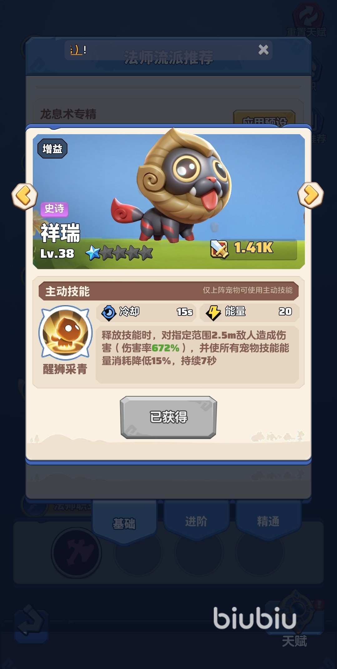 祥瑞是一只偏向辅助和续航的宠物。它的技能不仅能对敌人造成一定范围的伤害,更重要的是能降低所有宠物技能的能量消耗,使得你的宠物们能更频繁地释放技能。这个效果特别适合长时间作战或消耗战,保证你的宠物始终保持高效率输出和辅助,提升整个战斗的持续能力。