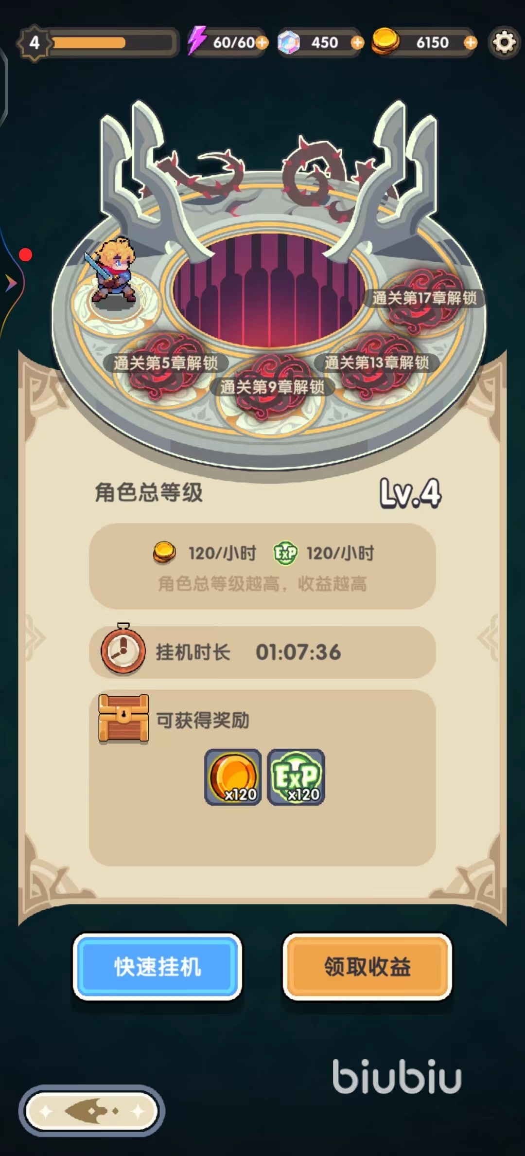 第三种则是挂机收益了,也可以称作放置收益,在游戏中玩家可以直接领取挂机收益,所以不用担心没有时间玩游戏不能升级,挂机收益或许不能直接提高玩家的角色能力,可累计起来同样是不小的收益,尤其是在角色提升到一定等级后,每次的挂机收益都是一笔十分可观的奖励。