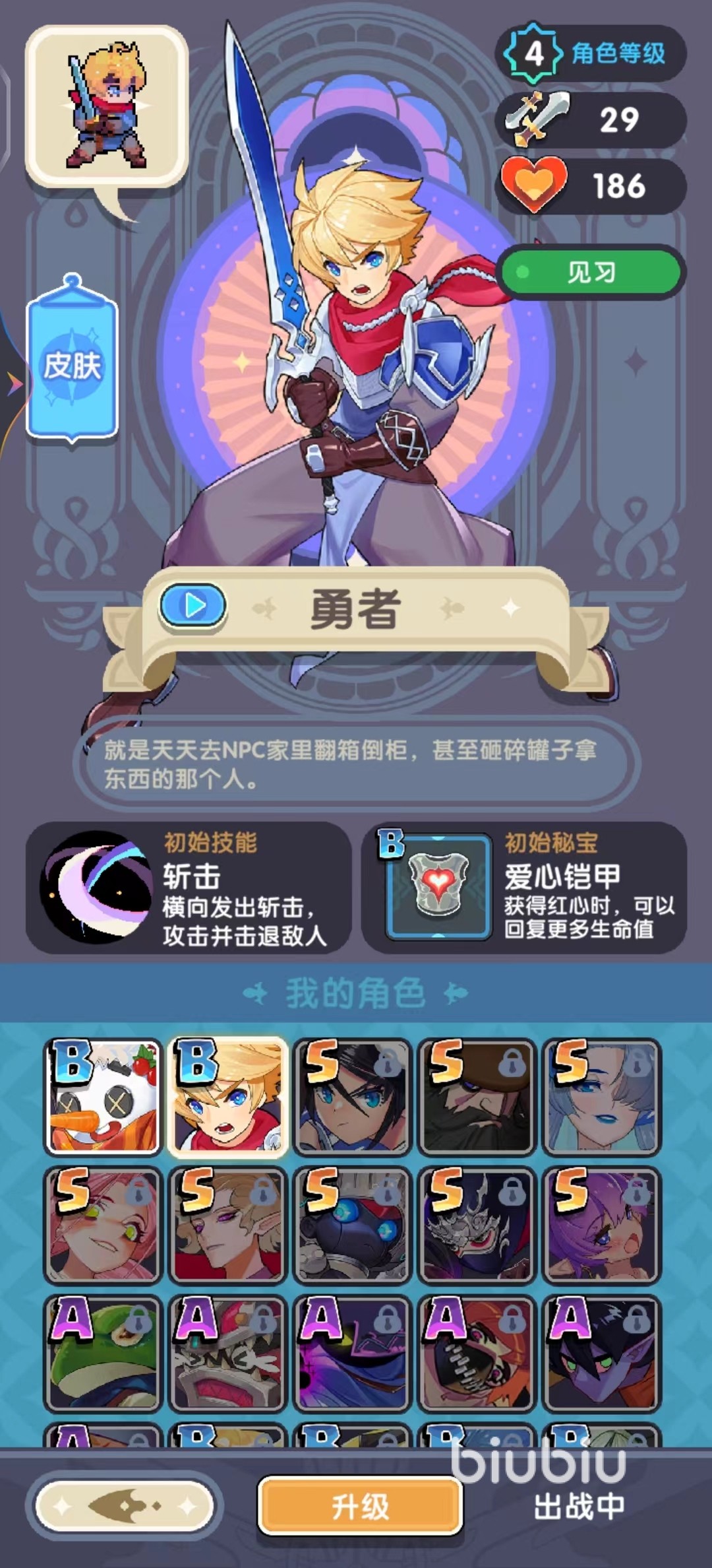 在勇者秘境中,目前的角色一共有二十个,其中包含六个B级角色,六个A级角色和八个S级角色,角色之间不仅能力值差距非常,技能方面差距也非常大,例如饱受大家欢迎的S级角色影武士,不仅可以直接攻击一条直线上的敌人,还有几率一次性选择两个技能,角色的获得可以通过酒馆的招募获得。
